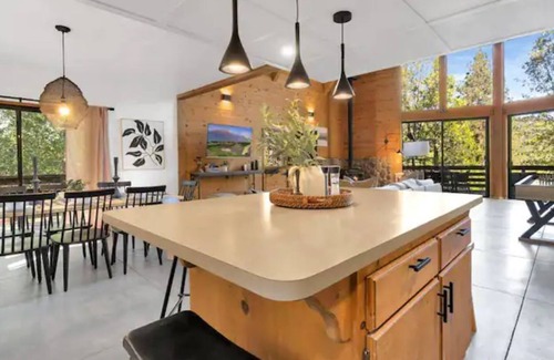 Modern elegant cabin with cozy charm, Hot tub on 1 Acre of land is located in Idyllwild. Modern elegant cabin with cozy charm, Hot tub on 1 Acre of land provides accommodation, featuring Spa, Fireplace/Heating, Child Friendly, among other amenities. This House features Spa, Fireplace/Heating, Child Friendly, to make your stay a comfortable one.