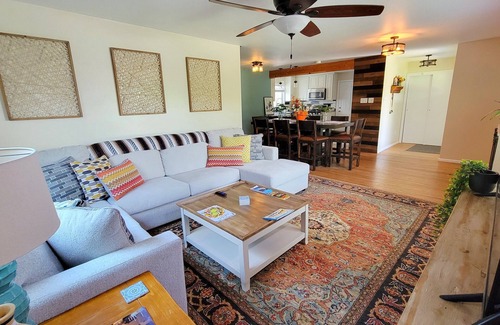 Have fun with the whole family at this stylish place complete with 4 bedrooms! Perfect for large families or two families looking to stay in 1 stylish home. Pet friendly too!