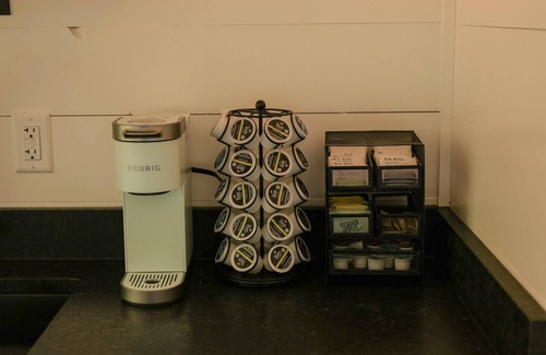☕ Mini Keurig w/ mugs and assorted coffees, creamers, and sweeteners