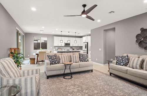 Nestled in Maricopa, this beautiful house offers three bedrooms - two with king beds and one with a queen bed. The unit also has a clothing steamer. The upper level has a second living room "loft" with a large TV, which provides another place to relax or watch a movie.