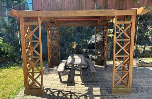 You may also share a meal together or relax in the evenings on the back patio which includes stair access down to the lower yard area. The yard is shared with the suite below and has a lawn and garden with a second patio and pergola.