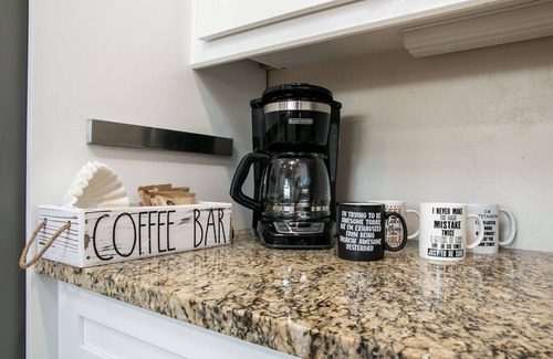 For those looking to stay in, there is a 65-inch flatscreen smart TV in the living room, a 60-inch flatscreen smart TV in the media room, and a 55-inch flatscreen smart TV in the master bedroom; all with access to Netflix, Hulu, Amazon Prime, etc. In addition, a stocked kitchen is available for guests to cook and dine at their convenience.