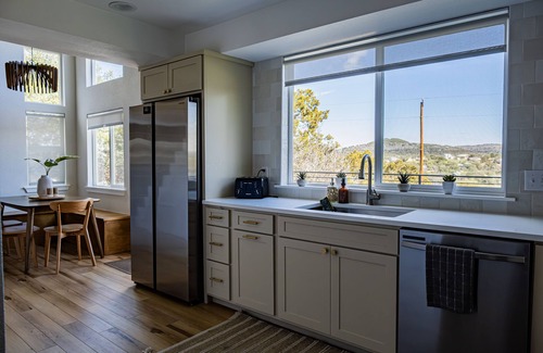 Escape to a newly renovated, modern retreat in the Texas Hill Country;. Thoughtfully adorned with unique art and furnishings from our travels, this cozy home offers a quiet and relaxing ambiance. Enjoy the spacious deck with stunning views, complete with both gas and charcoal BBQs. Within a 15-minute drive, discover local wineries, unique bars, and scenic hikes. Strict no party policy & no extra guests allowed. No loud outside noise past 10pm.