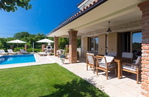 Luxury Villa Tia***** is one of the villas within the newly built villa complex located in Kras on the island of Krk, only 7km away from the sea. The villa is decorated in a way that is very harmoniously decorated with natural materials and rustic style.