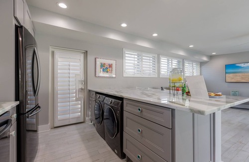 Simplicity meets luxury in this 2 bed, 2 bath home. The Bombay Beach Shack is our cozy beach-side getaway, just one block from the intracoastal water way and 5 minutes from the beach and town. Take a step outside, and enjoy the privacy of the refreshing pool and patio area. The kitchen offers brand new appliances and quartz countertops. The living room and all bedrooms feature flat screen smart TV’s, an XFinity cable subscription as well as high-speed WIFI.