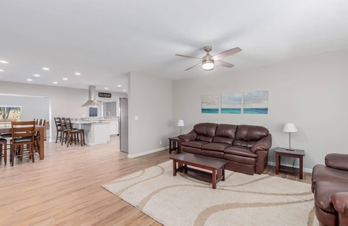 Whether you are visiting Phoenix for business or pleasure, Moon Mountain Vista is a great choice to enjoy Phoenix's mild outdoor climate. The backyard is well equipped with covered outdoor dining for eight, along with a hot tub, fire pit and putting green. The inside of the home is clean and uncluttered with excellent high speed internet offering a comfortable environment for both work and pleasure. Nearby paved and unpaved trails offer both hiking and biking adventures for you and your family. Nearby parks will allow you to get outdoors and get some exercise while visiting Phoenix. This home is pet friendly to dogs with a fully enclosed backyard so bring your 4 legged family member with you!