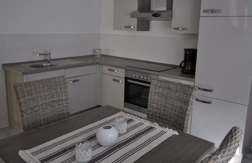 In the house are 2 apartments, which are connected by a door and can be opened if necessary. The apartment on the ground floor has beds for 2 people (on request also an extra bed for 1 child), kitchen and bathroom, terrace.
