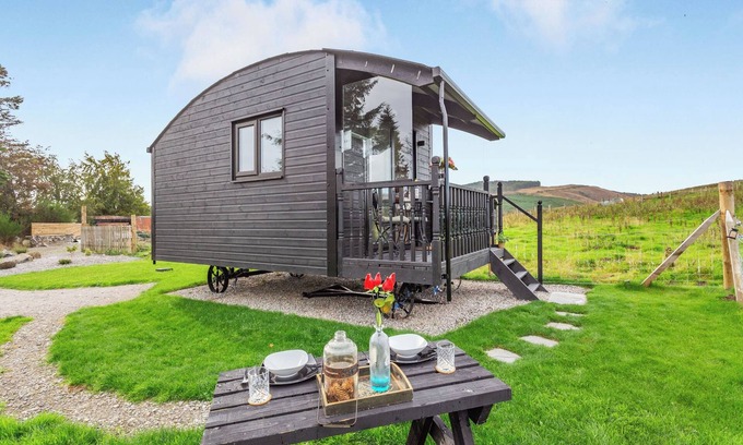 Shower Room: Cubicle Shower, Toilet. Electric underfloor central heating, electricity, bed linen, towels and Wi-Fi included. Welcome pack. . Front garden with sitting-out area, terrace and garden furniture. Private parking for 1 car. No smoking.. Mountain View Beauly is a boutique, luxurious Shepherd’s Hut set in a stunning Scottish Highlands location. Arriving at Mountain View Beauly is a special experience. You’re only thirty minutes from Inverness, but it feels hours from city life. You pull up at the Shepherd’s Hut and the mountain views are even better than the photos let on. With multiple Munros in sight - including those bordering nearby Glen Affric and mighty Ben Wyvis- forests rolling away in every direction and valleys cascading away from the hut.