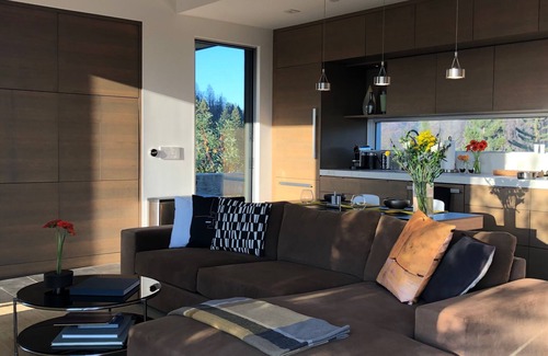 - Fully equipped, galley kitchen, overlooking majestic redwoods; includes integrated Bosch and Miele appliances; outdoor BBQ and indoor/outdoor dining.