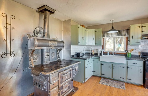 Perched on a secluded hilltop outside Patagonia, this 2-bedroom, 2-bath vacation rental cabin on 20 private acres offers a peaceful retreat surrounded by Arizona’s high-country beauty. At 5,400 feet elevation, it’s a cool-weather escape ideal for hunting, birding, and winter hiking through Sonoita Creek State Natural Area. After, warm up with a hearty meal in the fully equipped kitchen and unwind while stargazing under the mountain sky.