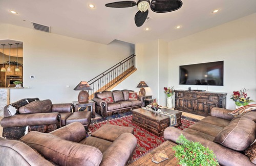 Your next luxury desert retreat awaits at this beautiful villa in Scottsdale! Boasting 6 bedrooms, 4 full and 2 half bathrooms, and an attached casita, this 4-acre oasis is perfect for a multi-family getaway. In addition to its resort-style grounds, this vacation rental offers a prime location near McDowell Mountain Regional Park and the Tonto National Forest. When you’re not lounging in the private pool or barbecuing in the outdoor kitchen, unwind with a movie on one of the 9 Smart TVs.