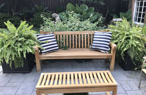Charming Hamptons style shingled and brick cottage with patio and gardens sharing a large in town parcel with a historic Houston home. Private entrance to cottage that is near the major Houston museums, Rice University, Herman Park, the Medical Center and Montrose. The cottage is very comfortable in a relaxed, casual environment with a large upstairs sleeping open loft and a private second bedroom which share a full bath. A full kitchen and half bath are downstairs adjacent to a large open living room and dining area fill with books on wall to ceiling book selves. The cottage shares the large lawn and garden area with a 1920's historic Houston home but has its own entrance. The homeowners kept strict privacy for all guests and usually have several dogs on the property but they will be kept away as well unless guests wish to meet them. Papercity listed the cottage living room as one of the "Top 10 Rooms in Texas" at number 8!