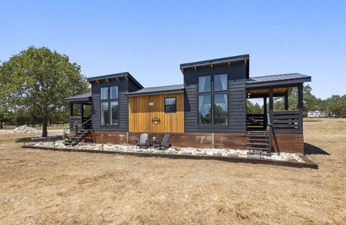 Welcome to our cozy Smithville, TX tiny home, a perfect retreat for couples or small families. Sleeps 4 amidst lush greens, with nature's beauty just outside your window. Relax by the pond, enjoy captivating views, and gather around the firepit. Experience safety and serenity in a charming setting. Ideal for reconnecting and making cherished memories.