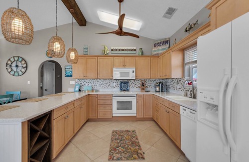 Less than 100 yards from beach access, and situated on a private canal, you can dock your boat or jet skis. There is a spacious yard, OUTDOOR KITCHEN, bar, swing and PRIVATE pool. The pool is not heated.