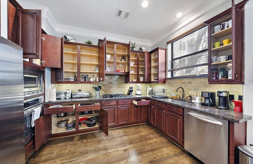 Based on the information received from our partner, the Houston Heights house has not specified they are wheelchair accessible. Likewise, there is not an elevator specified as being available at the property. Specific accessibility details may be addressed in the property details section of this page.