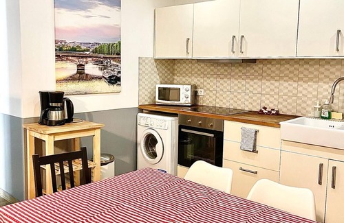 -Une cuisine entièrement équipée (plaques de cuisson, casseroles, assiettes, couverts, micro-ondes, four, cafetière, bouilloire, lave-vaisselle) pour préparer de délicieux repas.