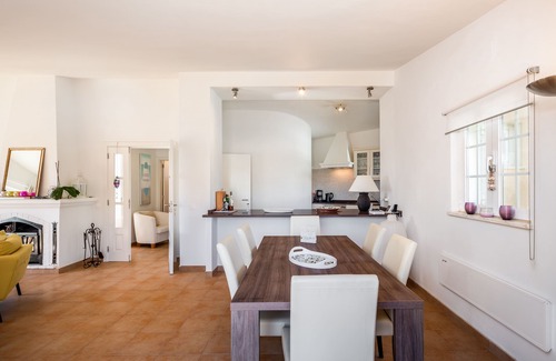 The villa can accommodate up to 8 people in 4 separate spacious bedrooms, each with a unique feel. All bedrooms are equipped with very high-quality beds, 3 of which with king beds (1.8mx2m) and 1 with 2 single beds (1mx2m). Except for the latter, all bedrooms have direct access to their own terrace/balacony. There are also 2 large (private) bathrooms and 3 toilets. The upper floor of the villa has a very large living room (35m2), dining room (25m2) and fully equipped open kitchen (15m2). The living room comes with a large flat screen TV with Portuguese cable and internet - Wi-Fi. The villa has a caretaker (which will be on premise to greet guests upon arrival), a weekly pool cleaning service, and a weekly gardening service to keep the terraces and gardens clean.