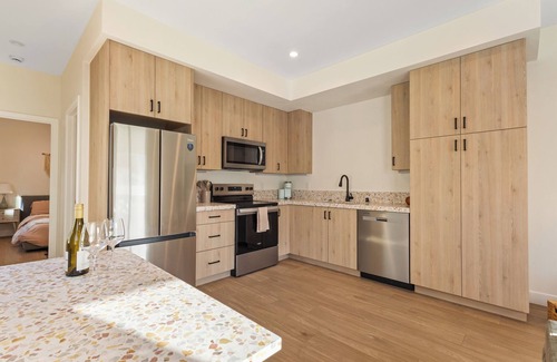 Enjoy a stylish experience in this centrally located brand new home. Newly built in 2025! This home has top of the line details like Terrazzo counter tops, beautiful ribbed shower tile, modern cabinets and luxury vinyl flooring. Also enjoy AC, in unit washer and dryer along with an inviting outdoor space to relax. Designated free parking!
