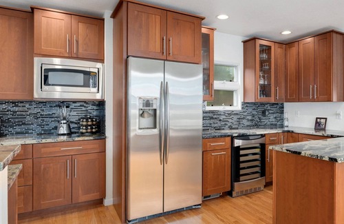 The home offers an open floor plan offering lots of room for you and the other guests. The hard wood floors are very complimentary to this brightly lit home.
