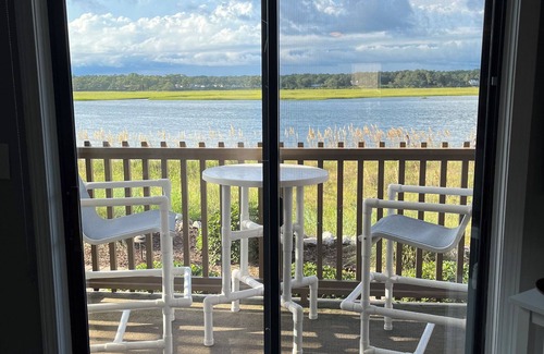 This unit offers the rare opportunity to be just steps away from both the inlet and the beach (and where they connect), with the view essentially changing constantly as the water switches between low tide and high tide. You can also see the undeveloped Waties Island from the balcony!