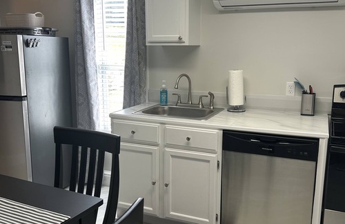 Our Studio features an open living room/kitchen/bedroom area with 1 queen bed and a kids cubby that has 2 twin beds with a Tv & DVD player. Enjoy amenities like WiFi, Spit unit air conditioning with heat and all full size appliances. It also features its own parking a few steps away from your entrance.