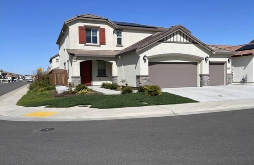 Home built 2021 from Lennar Home Builder. Corner lot, huge backyard fully landscape with many fruit trees. Main house 2,850 sf with 3 big bedrooms, 2.5 bathrooms, and 3-car garage. It also has a flex downstairs setup as your office/workspace, and a huge loft upstairs for your second living room or entertainment area. Brand-new three beds, mattress, smart TVs,... House features with auto on/off porch lights and Ring security cameras outside for safety. Excellent location and a nice, peaceful place!! 3 miles to Wildhawk Golf Club, 5 miles to Kaiser South Sacramento, Costco, and Sam's Club. Other hospitals/medical clinics within 4 to 10 miles. Restaurants and supermarkets are nearby.