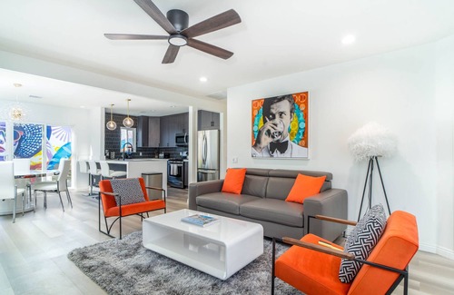 New Modern Palm Springs Resort - 5 Mins to Downtown is located in Little Tuscany. New Modern Palm Springs Resort - 5 Mins to Downtown provides accommodation, featuring TV, Security/Safety, Barbecue/Outdoor Cooking, among other amenities. This House features TV, Security/Safety, Barbecue/Outdoor Cooking, to make your stay a comfortable one.