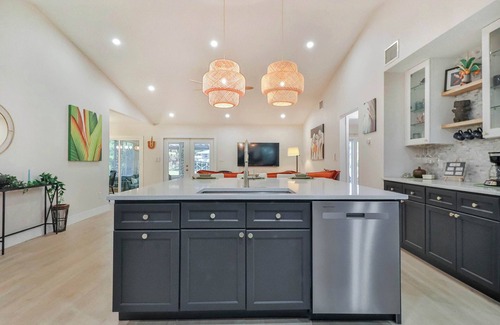 3-bedroom, 2-bath oasis on Turkey Creek, large chef’s kitchen with huge island and bar, and an open layout. Colorful and elegant, with a cozy feeling and lots of room to relax and unwind both inside and outside.