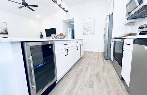 The kitchen island has area seating for six, and a wine fridge. Washer and dryer are located in the hallway closet. The living room area has a TV and the house of course has wifi. We also have an attached outdoor walk-in closet to store your beach chairs, coolers, boogie boards etc. Our villa does come with 4 beach chairs, a beach cart, beach toys, a UPF 50+ beach umbrella and a boogie board to enjoy during your stay. There is a parking spot available at our home with additional guest/visitor parking spots throughout the community.