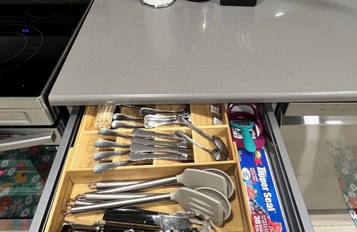 Separate thermostat with Alexa. 1 GBPS High speed fibre internet. Kitchen utensils/appliances for your convenience. Street Parking.