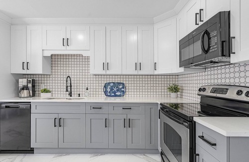 Home features an open floor plan with new porcelain tile flooring throughout. Spacious kitchen with big island and brand new appliances. All furniture is new and high quality. 3 bedrooms (1 king & 2 queens) all contain their own flat screen televisions and Wi-Fi throughout.