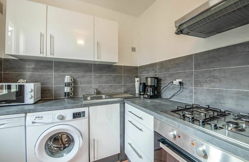 The apartment is equipped with various amenities to ensure a comfortable stay. Air conditioning is provided to keep the living space cool and comfortable. A dishwasher is available in the kitchen to make cleaning up after meals hassle-free. Heating is also included to keep you warm during cooler weather. A microwave oven is present for quick and easy meal preparation. For entertainment, a television is provided in the living area. The maximum capacity of the apartment is four guests, with one bedroom and one bathroom.