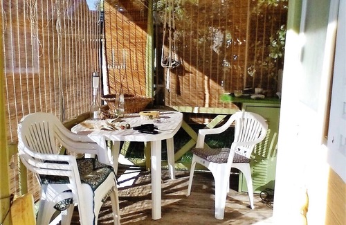 Wooden bungalow in the Marina di Sorbo campsite, in Querciolo in Haute-Corse, 30 km south of Bastia, eastern plain.