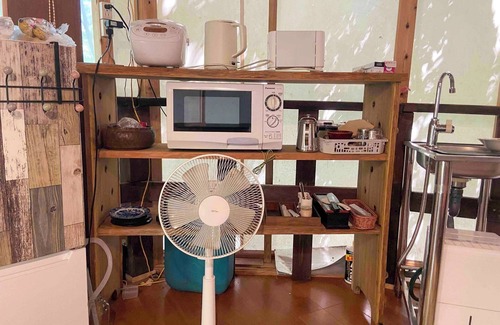 Rooms We have two rooms available depending on the number of guests Perfect for use as a glamping cottage or for long stays as a rental villa Main building Takachiho Accommodates up to 9 guests Annex Shinmoe Accommodates up to 4 guests As our facility is located at an altitude of 700m you can stay comfortably without air conditioning even in the summer Fans provided