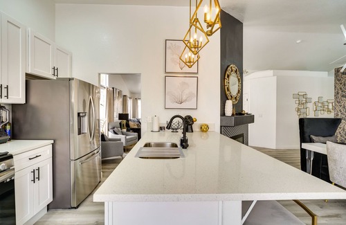 Searching for the perfect home for rent in North Las Vegas? Look no further than this 3-bedroom, 2-bathroom house in a peaceful neighborhood setting. The vacation rental is stocked with upscale amenities and boasts a luxury interior that's been newly updated. Take advantage of the remote workspace, the game room, or the lovely back patio. Then, head out to the area's best spots like the Las Vegas Strip, Red Rock Canyon National Conservation Area trails, or the Arts District.