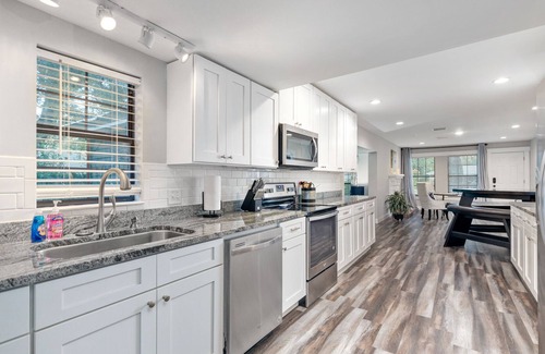 Located in The Cove, this precious house boasts 3 bedrooms, 2 baths, and was freshly remodeled. Granite in the Kitchen and baths and the most AMAZING Master Bath you've ever seen! Each bedroom has a queen bed and the Living area has a Queen sleeper, for those extra guests. Centrally located to Historic Panama City, the Hospital and all big box stores. Come get away at this evocative home full of Southern Charm. EV Charger available for main house guest.
