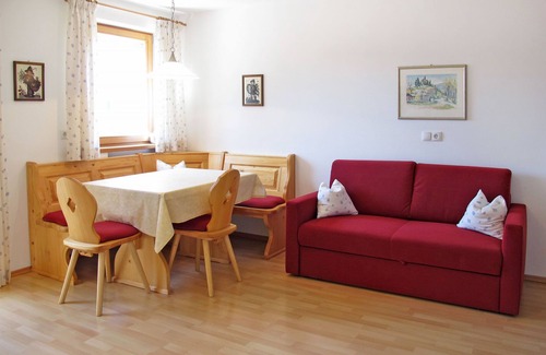 "Obermüllerhof", 4-room apartment 75 m2 on 2nd floor. Bright, practical furnishings: large living/sleeping room with 1 double sofabed, dining nook and TV. Exit to the balcony. Living/dining room with dining nook and kitchen corner. 2 double bedrooms. Open kitchen (oven, dishwasher, 4 ceramic glass hob hotplates, kettle, electric coffee machine). 2 showers/WC. Heating. Balcony. Balcony furniture. Facilities: children's high chair. Internet (WiFi, free). Please note: non-smokers only. Private entrance.