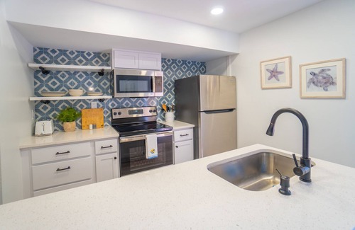 Newly renovated Ocean Breeze Retreat features 2 spacious bedrooms with comfortable, organic Bamboo mattresses. The Master bedroom has a king bed and a large en suite bathroom with a beautifully tiled shower. The Master bedroom also has a dedicated workspace for those who are looking for a place to work remotely while enjoying the nearby beach. Nightstands have built-in USB chargers for your devices. The 2nd bedroom has a queen bed with a large closet and dresser. The stunning kitchen has all new appliances and cooking essentials. The living room has a Smart TV and the comfortable couch is perfect for lounging around or a movie night when staying in is more appealing than a night out. There is a fully fenced-in backyard as well.