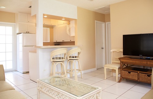 This comfortable villa exudes a south florida tropical feel and the decor is very bright and tasteful. The villa contains 1 large bedroom with a large walk-in closet, 1 bathroom, open kitchen with eating nook and dining table & chairs, and a comfortable living area with couches. The kitchen is fully equipped with all the accessories needed. Villa furnishings are comfortable and have a modern appeal.