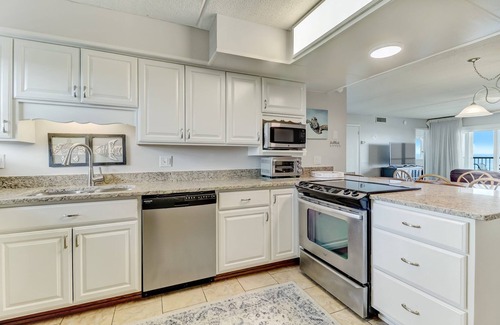 The unit has 3 bedrooms and 2 baths and has a magnificent 3rd floor view of the Atlantic Ocean. Recent renovations freshen the large comfortable living area. The newly remodeled kitchen opens into the living room. All rooms have recently been painted. The master bedroom has a king bed and a TV as well as a private refreshed bath and closet space. The first guest room has a queen and a twin bed, while the second guest room has a full and twin bed. All linens in this unit are part of an off-site sterilization program. There is a new washer and dryer, stove-top, microwave and refrigerator in the unit for your convenience. The expansive private balcony has four chairs and a dining table so you can enjoy your meals watching and listening to the surf roll in, or enjoy the rocking chairs on balcony as the sunlight turns to stars and you relax enjoying the ocean's evening breeze. For quiet evenings inside you can enjoy the new 55” television, or keep in touch with friends or stream with secure wi-fi.