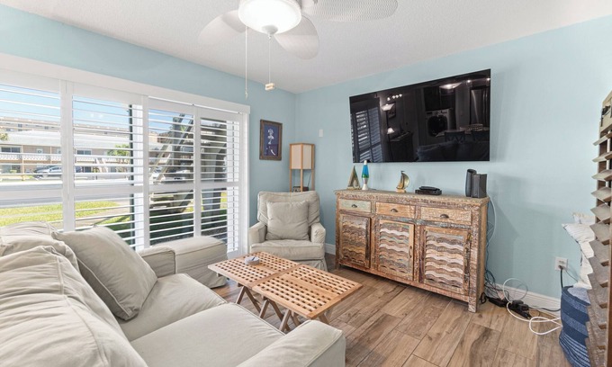 Located just steps from the beach, this ground-floor retreat makes it easy to wake up, grab your beach gear, and head straight to the shoreline. Centrally positioned in Cocoa Beach, you'll be across the street from Publix and surrounded by local restaurants, surf shops, and must-see attractions like the Cocoa Beach Pier and Ron Jon Surf Shop.