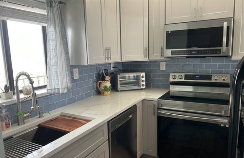 GULF VILLAGE #313 Have fun with the whole family and friends at this newly renovated(April 2023) 2 BR 2 BA condo. Very nicely decorated giving it the beach life feel to escape your everyday life. There are two pools, one is oceanfront and the other across the street as well as a fishing pier. There is an elevator and carts to transfer luggage. I have plenty of beach chairs and toys on the deck to bring to the beach. As you enter, the kitchen is on the right and fully equipped for food preparation and service. Wine glasses, ninja blender, drip coffee maker(supplies for this aren't guaranteed), plenty of drinkware. as well as pots and pans. The dining table seats six, and there are two bar chairs. The first bedroom on the right has a twin over full bunk bed as well as a twin pullout trundle to sleep 4. There is also a TV in this room as well. The bathroom attached to this bedroom can also be accessed from the main living area and there is a full size washer and dryer. The living room has a queen sleeper, loveseat and chair as well as a 55 inch TV with Netflix and cable TV. In the master bedroom there is a very comfortable queen mattress, wall mounted TV, and an ensuite bathroom. The deck off the back side has beautiful ocean views as well as a direct view of the pool. It has four chairs for relaxing outside as well as a loveseat couch with small dining table. You can also find plenty of supplies of beach chairs and toys out here to use. Gulf Village condominiums not only have the beach right outside; they enjoy a private fishing pier on the Little Lagoon across the road behind the cottages. The condo is on the third level, with the elevator right around the corner. There are two pools, with one just below the condo. Grills are poolside and parking is underneath the building, with carts to transport your luggage to the condo! Bring only what you need; there is a full size washer/dryer in the extra bathroom.. The property is 1.3 miles away from The Hangout on West Beach. Wonderful seafood restaurants are nearby, and the Tanger Outlets are a few miles up Highway 59 in Foley. Just a couple of blocks up West Beach Boulevard, there's the Beach House Kitchen for dining out as well as S&S Seafood, which will fry, blacken, or steam seafood for you to bring back to the condo. Janino's Pizza is just across the street for easy take-out. Billy's Seafood, located on County Road 10 on Bon Secour River, is great for purchasing fresh shrimp, and preparation instructions are even given upon purchase. Rouse's Grocery is prevalent along the Gulf Coast from New Orleans to Orange Beach, and we have one a couple of miles away on Highway 59 in Gulf Shores! You can find wonderful seafood and Louisiana specialties there! RESORT AMENITIES