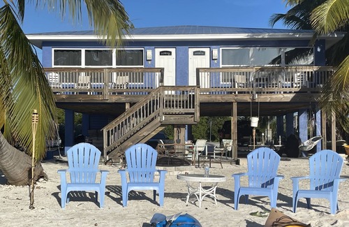 We have two oversized second story apartments directly on a private Sandy Beach. Both apartments have had complete renovations completed December, 2017, with new kitchens, new bathrooms, floors, etc. Each unit sleeps a maximum of 4 people. Rent with rental number 9131033 (separate reservation and fees) to sleep up to 8 people. Walk from your front door onto a large sand bar in the Atlantic Ocean. Watch the sunrise and sunset from this uniquely located private triplex. Tie up your boat directly behind the property on the sandbar or dockage and boat launch available across the street on the Bay side. Amazing sea life right at the beach, stingrays, puffer fish crabs, shark. Fish right from the shore. When tide is out you can walk hundreds of feet into the ocean on the sand bar. We also have two kayaks for you use