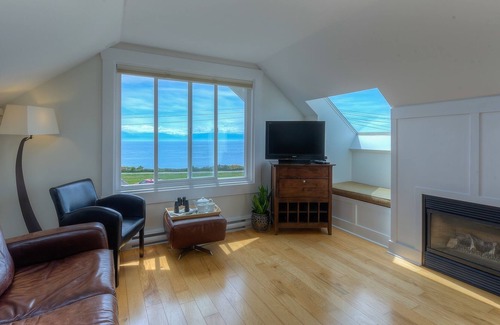 This southwest corner townhouse is ready for you to enjoy with year-round unobstructed sunsets. Amazing views of the ocean, Dallas Road Waterfront Park, kite surfing, paragliding and the Olympic Mountains. Night time star gazing through large skylights and Salish Sea storm watching on the comfy couch in front of the cozy gas fireplace.