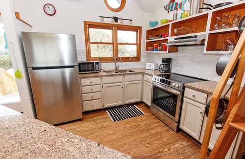 Top Level: Entry Level. Great room with 48” flat-screen HD TV/Blu-Ray DVD, wood fireplace and deck access, dining room seating 6 and the kitchen with stainless appliances and counter seating for 4. Queen Master Bedroom with private bathroom, Queen Bedroom with ocean views, Bedroom with 2 Singles, full hall bathroom and a loft (accessible by ladder) that can double as a 4th sleeping area with 2 Singles and a TV. Laundry with washer and dryer. Front porch with picnic table, ocean views and a gas grill.
