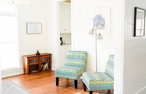 Getting a rest is simple in Shayna Playa. While all of the bedrooms are inviting, the oversized primary suite upstairs hosts a king bed, oversized walk-in-closet and massive luxury en suite bath with double vanity. The primary bedroom also has a private entrance to a spacious porch. Also located on the second level are two guest bedrooms that share a hall bath. The first guest bedroom has a queen bed with new mattress and the second guest bedroom offers twin over twin bunk bed perfect for your younger guests. A third guest bedroom is located on the main living level which has private access to a full bath with secondary access to the hallway. Each bathroom is equipped with a hairdryer. While the cottage can comfortably accommodate 8 guests, there is space for two additional guests on the large futon located in the sitting room for a total occupancy of 10 guests.