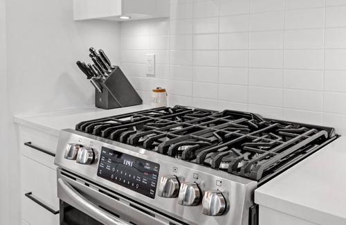 Downstairs, you’ll have access to the laundry room with front loader washer and dryers, as well as an office space which can also be converted to a bedroom with a queen murphy cabinet bed.