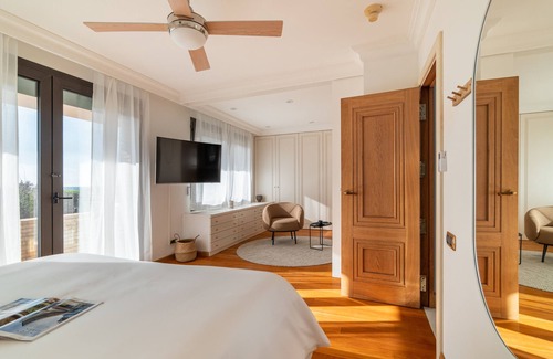 With an appealing mixture of Mediterranean furnishings, soft pastels, and creamy beiges, this 7-bedroom villa is a spacious and welcoming holiday residence you will love staying in. The scenic balconies offer a great view of the azure sea. The villa is fitted with a beautiful private swimming pool, a cozy living room with a flat-screen TV, a dining area, and a poolside patio that overlook the lush backyard. The villa comes with 2 king-size beds, 3 double beds, 2 single beds, and 2 double sofa beds for a maximum capacity of 16 people. 5 parking lots are available onsite.