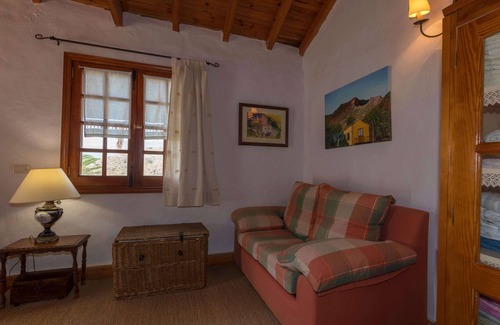 The "Old Mill" is located in a Canarian palm grove surrounded by an entirely rural environment. This is a two-storey house; on the ground floor there is a kitchen integrated with a living room, and on the first floor there are a bathroom with a bathtub and the bedroom with a marvelous view of the palm grove.