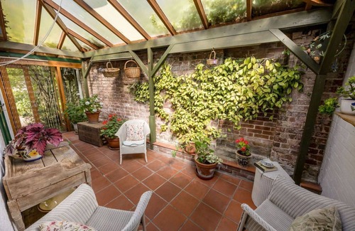 The garden is an original part-walled design, featuring a large lawn, beautiful flower borders, and a spacious patio with outdoor furniture and a charcoal BBQ (starter pack supplied). There is also a separate bench seating area under a veranda, perfect for a quiet cuppa in the morning or an ideal spot to enjoy the evening with your favourite drink in hand. The property includes off-road parking for up to four cars, ensuring convenience for larger groups or guests with multiple vehicles.